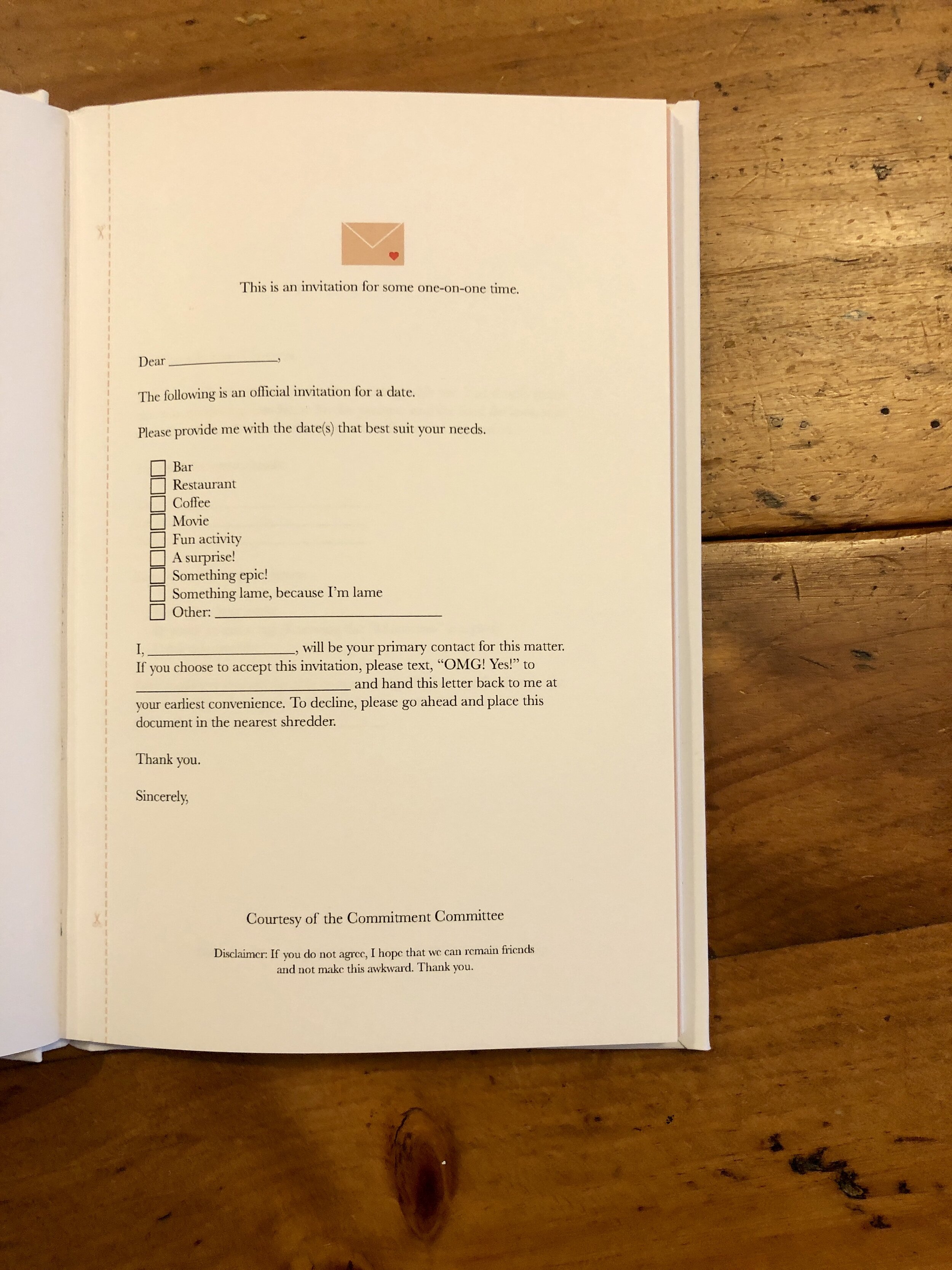 Ever wanted to ask someone on a date in person, but the fear of rejection was too much to handle? Or wanted your significant other to agree to a night out, but they’re always busy and brushing you off? It’s nerve-racking! That’s why we created Commitment Contracts, professionally written letters that ask someone a question so you don’t have to.